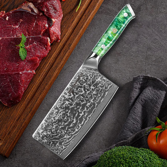 Premium Damascus Steel Chef Knife with Green Resin Handle