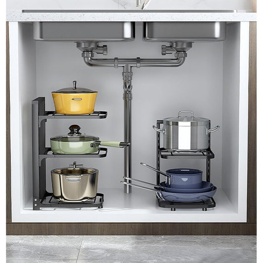 Floor-To-Ceiling Kitchen Rack Multi-Layer Pot Storage Rack Under The Sink Cabinet Pot Rack Desktop Rack Kitchen Supplies Rack