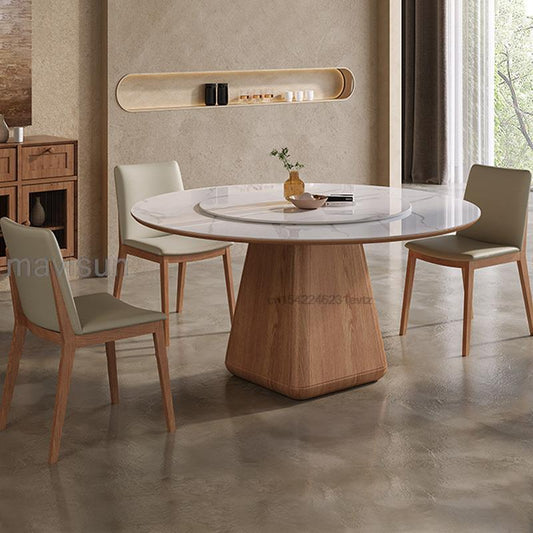 Wooden Dining Room Sets Stable 12mm Rock Slab And 18mm Thickness Of Base Plate Tabletop Round Kitchen Table With 360°Turntable