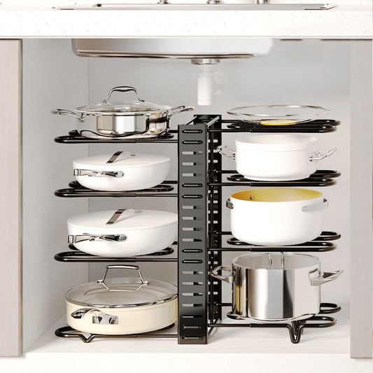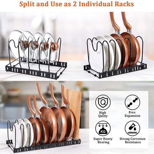 2pcs Expandable Pot Pan Lid Rack Bakeware Cupboard Organizer 10 Adjustable Dividers Cabinet Pans Holder Kitchen Accessories