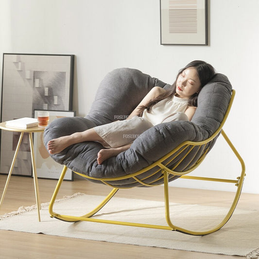 Nordic Wrought iron Living Room Chairs Leisure Household Furniture Lazy Sofa Rocking Chair Single Balcony Comfortable Recliner