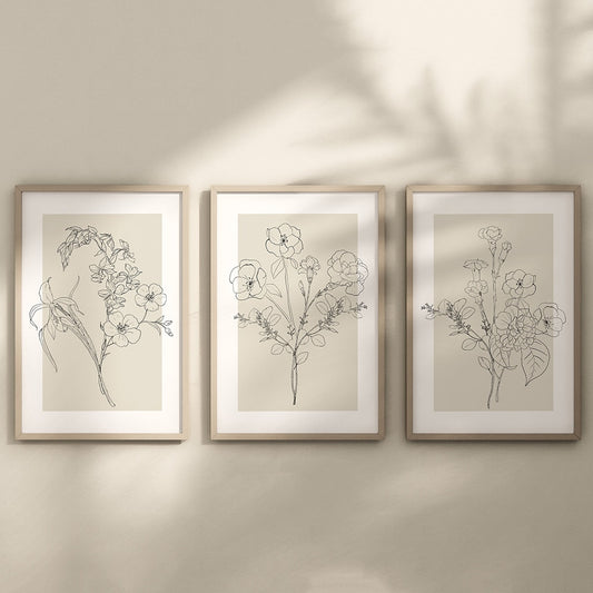 Boho Botanical Flower Line Beige Posters Wall Art Canvas Painting Minimal Floral Print Pictures Neutral Living Room Home Decor