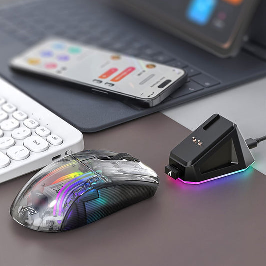 Wireless Gamer Mouse RGB Lighting 3 Modes Portable Mouse Bluetooth-Compatible 5.0/2.4G/USB-C Transparent for ESports Office