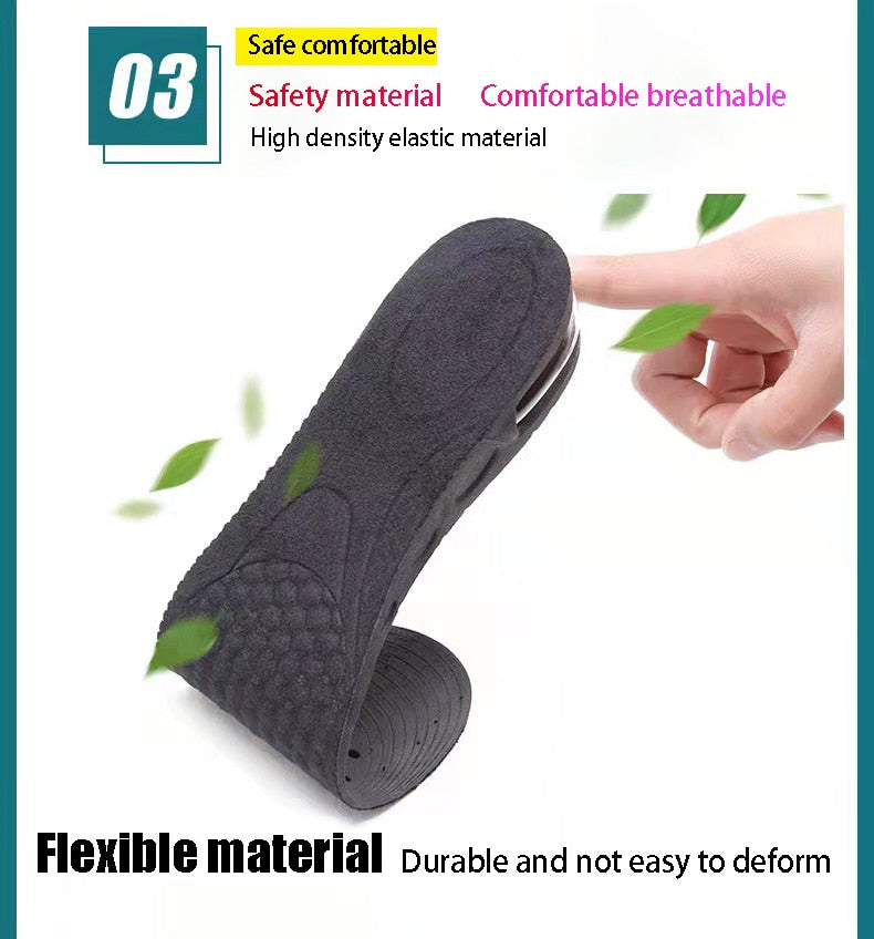 Achieve extra height and comfort discreetly with our 3-9CM Invisible Height Increased Insole. These innovative insoles can be inserted into your shoes, allowing you to adjust your height by up to 3-9 centimeters. They provide superior comfort and support, making them suitable for both men and women. Elevate your confidence and step out with a little extra height, thanks to these unisex height-increasing insoles.