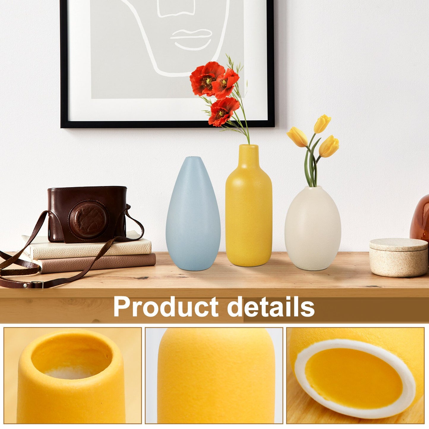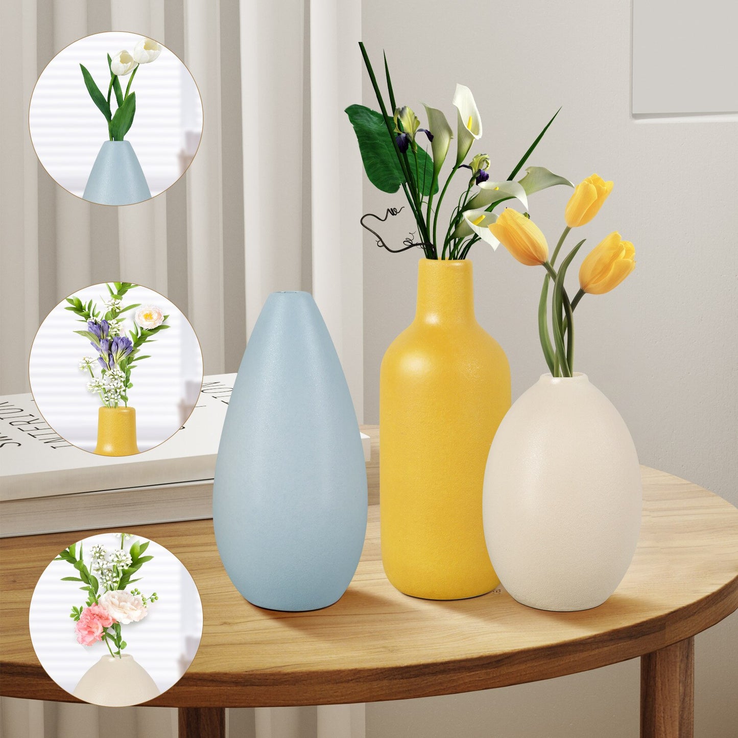 [Minimalist Design] This vase set has minimalist shape with colorful appearance, suitable for home, office, store, restaurant, cafe, etc., and suitable for different decorative styles such as countryside, modern farmhouse, minimalist and so on.