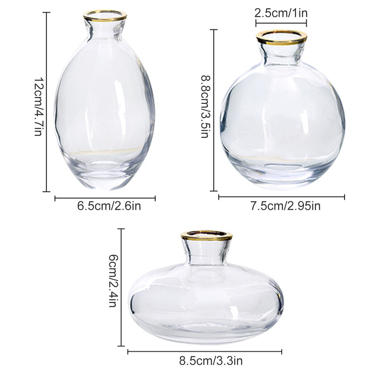 3×Glass Bud Vase