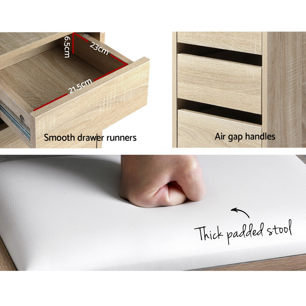 Artiss Corner Dressing Table Mirror Stool Set Makeup Vanity Desk Chair Oak