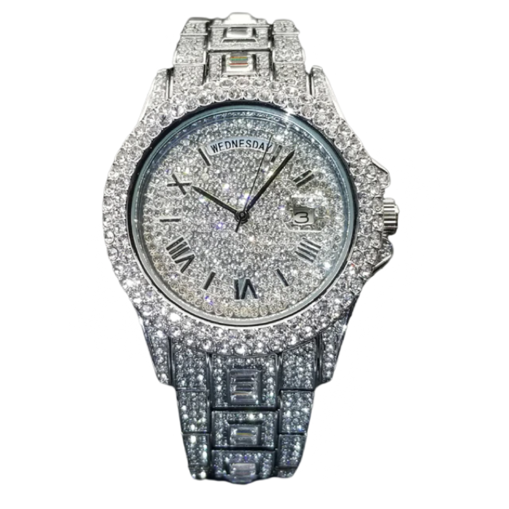 Iced out watches can indeed add a touch of elegance and style to both men's and women's outfits. The term "iced out" typically refers to watches that are adorned with diamonds or other precious stones, often set on the dial, bezel, or even the bracelet. These watches are designed to be visually striking and to make a statement. Iced out watches come in various designs, ranging from classic and understated to bold and extravagant. The choice depends on personal preferences and the desired level of sophistication. Some watches may have diamonds or crystals encrusted on the entire dial, while others may feature smaller accents for a more subtle effect.