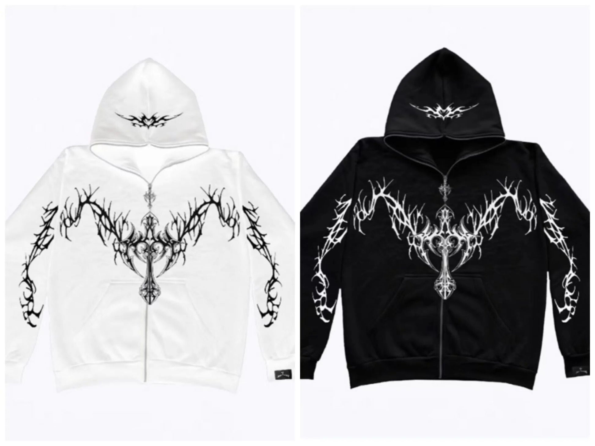 Casual and Oversized: The description suggests that these Gothic zipper hoodies are designed for casual wear. They are also described as "oversized," indicating that they have a loose and relaxed fit, which is a common style in streetwear.