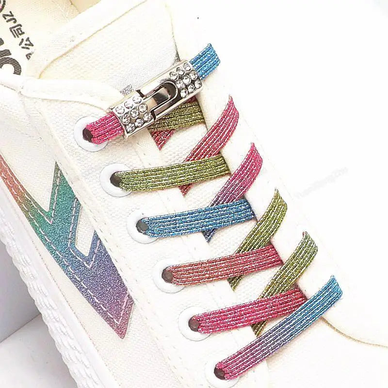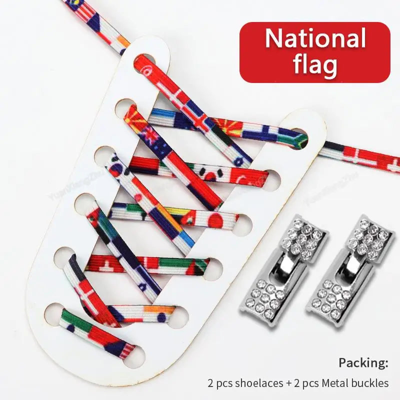 Our Flat Laces with Cross Metal Locks are another must-have for your shoe collection. Made from the same stretch cotton material and featuring a durable metal lock, these laces are perfect for both adults and kids.