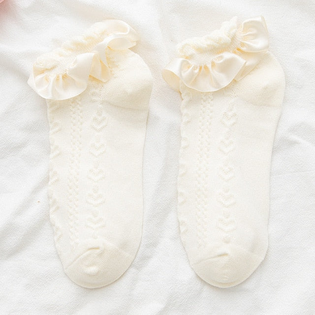 Introducing our Lolita Style Women Socks, the perfect addition to any wardrobe. Our socks feature a luxurious Japanese Kawaii design, in classic white and black shades with vibrant frills and lacy mesh. Expertly crafted from high-quality cotton, featuring a comfortable one-size fit, these socks are perfect for any occasion. Whether you're looking for something special to spice up your everyday wardrobe or some added glamour to your evening out, these socks not only provide comfort but also effortless style! With an affordable price tag and long-term durability, pair them with your favorite shoes for the ultimate fashionista look. Add our Lolita Style Women Socks to your closet today!