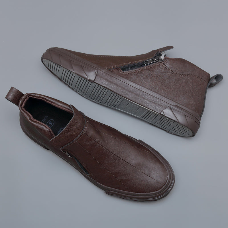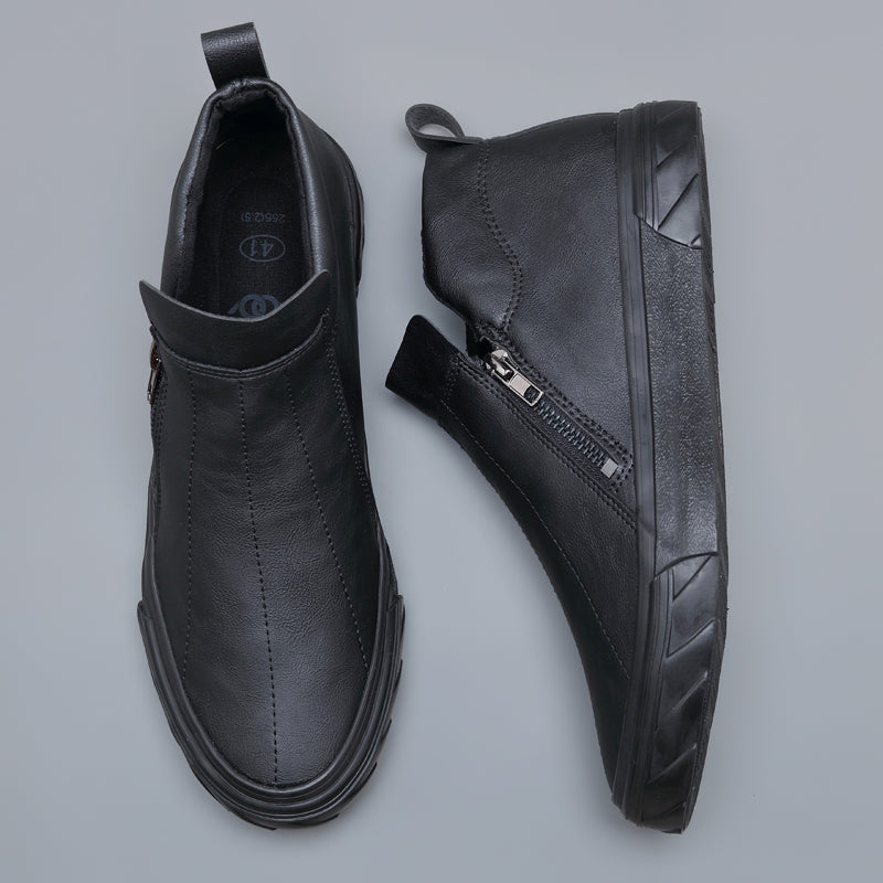 Check out the sleek and stylish Men Vulcanized Leather Loafer Shoes from our brand! This latest style features a timeless design with a side zip closure and an eye-catching leather upper, making it an integral part of any man's wardrobe. Perfect for dressy occasions and casual daily wear, these loafer shoes ensure you stay comfy and look your best all day long. The vulcanization process ensures superior quality and durability for long-lasting wear. With breathable stitching, a round toe design and a unique ability to maintain its shape through use, you'll love wearing these shoes season after season. Whether you're dressing up or dressing down, these stylish Men Vulcanized Leather Loafers are sure to keep you looking and feeling your best! Shop now before they're gone!