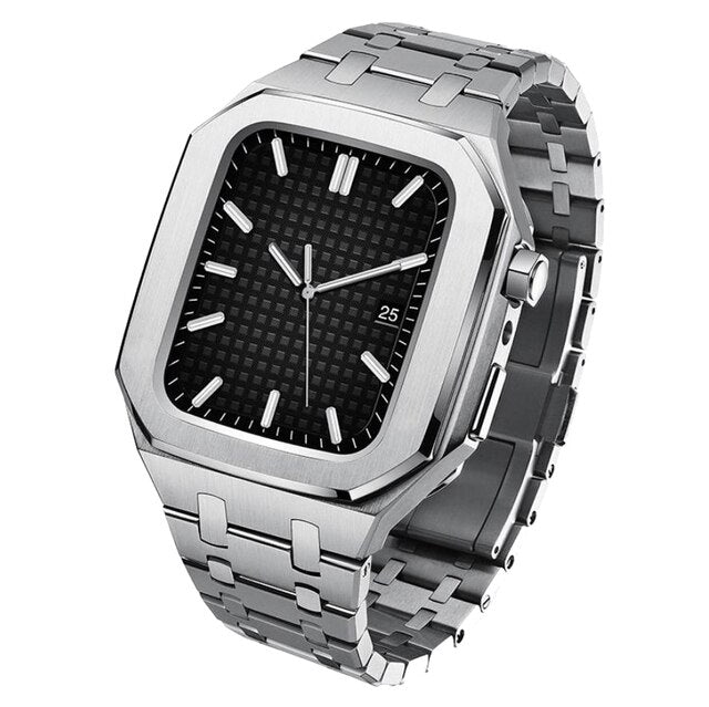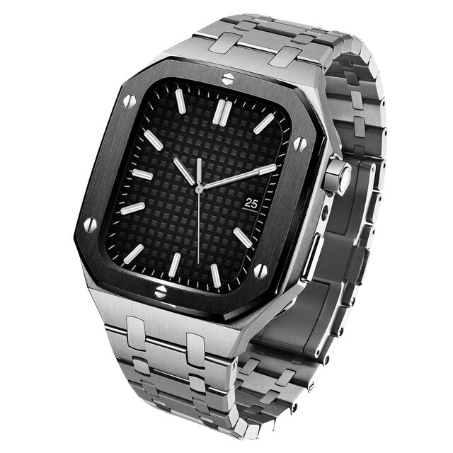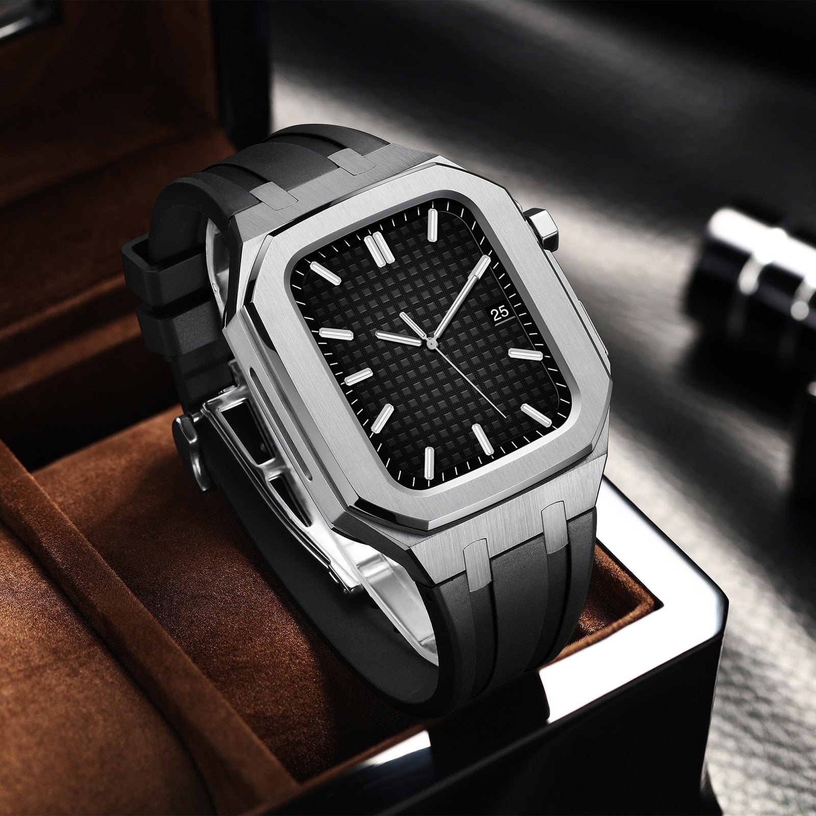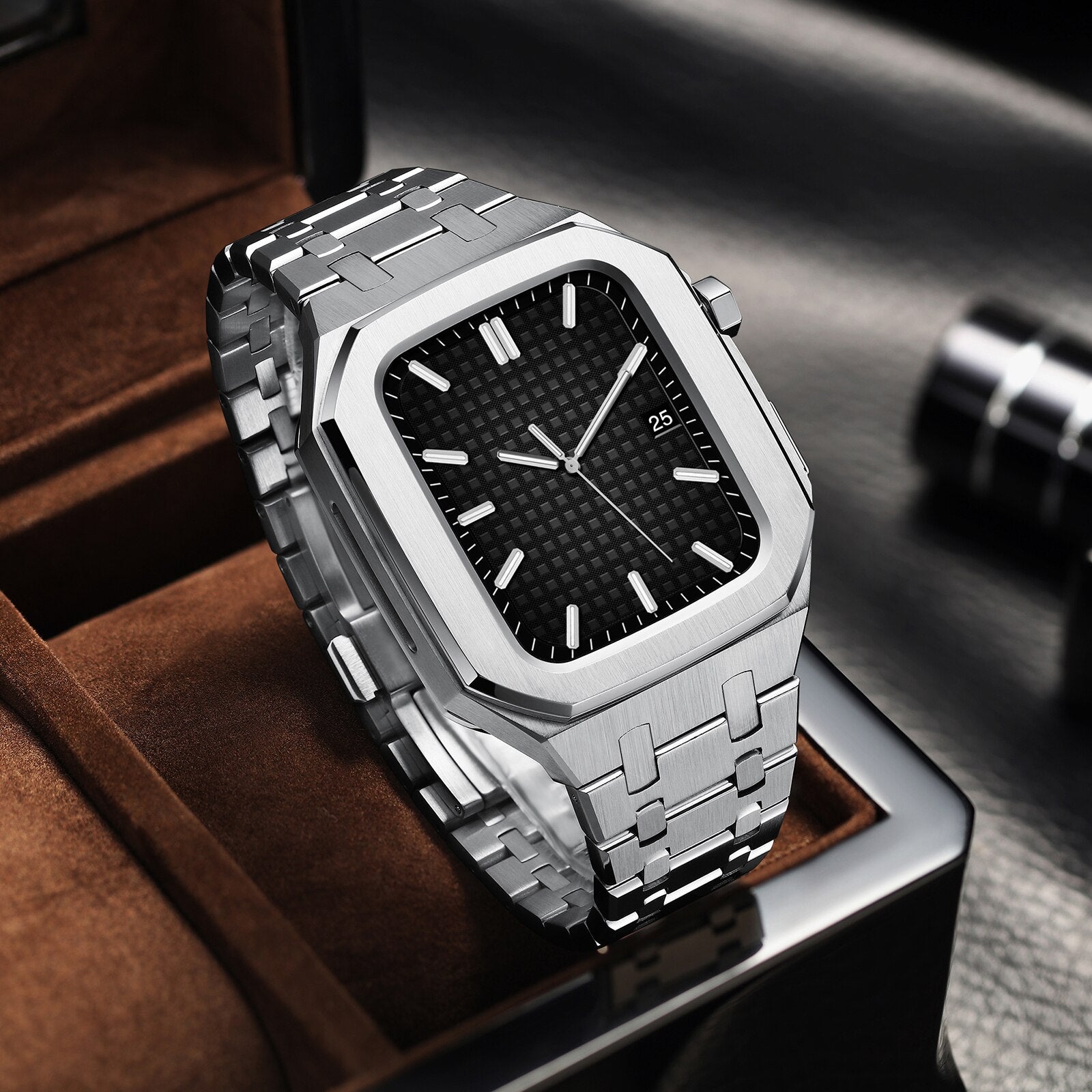 Introducing the MOD Kit for Apple Watch Series - the perfect stylish accessory for your Apple Watch. Our kit is crafted from super strong 316L Stainless Steel with a TPU Rubber band and screws to secure in place. The bezel material is also 316L Stainless Steel, giving you an extra layer of protection. At only 120g (Rubber Set) or 150g (Steel Set), it’s lightweight and comfortable enough to wear all day – but robust enough to handle whatever life throws at it. We’ve included installation tools and screws so you can rest assured that your watch will be safely secured wherever you go. Packaged in a carton box to offer unbeatable protection against damage during transit, our MOD Kit for Apple Watch Series 6 5 4 delivers style, security, and convenience – all rolled into one.