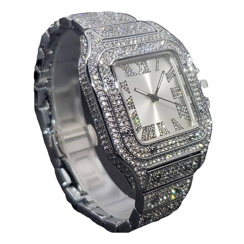These watches can be designed for both men and women, offering a glamorous and eye-catching accessory option. The silver color is often chosen for its sleek and versatile look, complementing various styles and outfits. It's important to note that the term "iced out" and the use of crystals can vary in terms of quality and authenticity. High-end luxury brands often incorporate genuine diamonds or high-quality crystals, while more affordable options may use cubic zirconia or other synthetic stones. When looking for an iced out crystal square watch, it's advisable to consider factors such as the brand, the type of crystals used, the craftsmanship, and the overall quality of the timepiece to ensure you're getting a reliable and visually stunning watch.