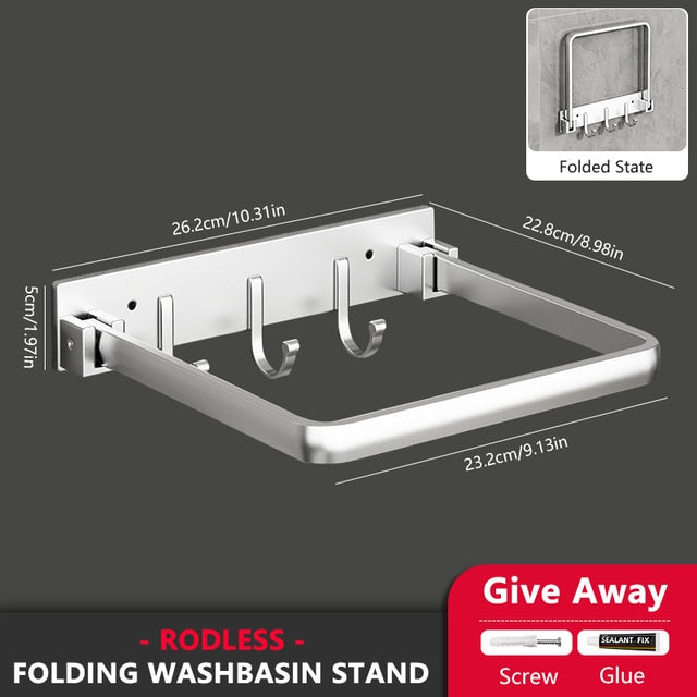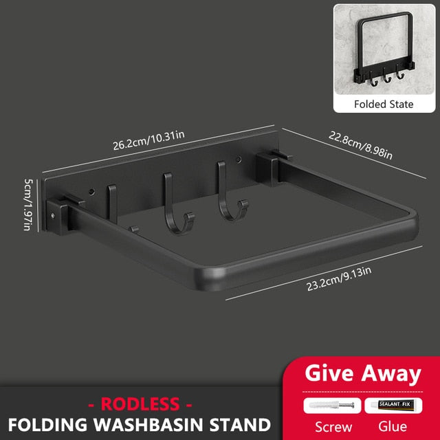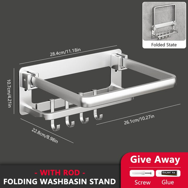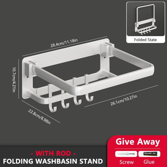 Discover the ultimate space-saving solution with our Wall Mounted Foldable Storage Shelves. Perfectly designed for your household, bathroom, or kitchen, these shelves come equipped with a foldable feature that maximizes functionality. Complete with hooks and a punch-free installation, they offer a convenient towel holder and wash basin rack. Enjoy clutter-free spaces with this versatile and practical storage solution, designed to elevate your organization and simplify your daily routines.