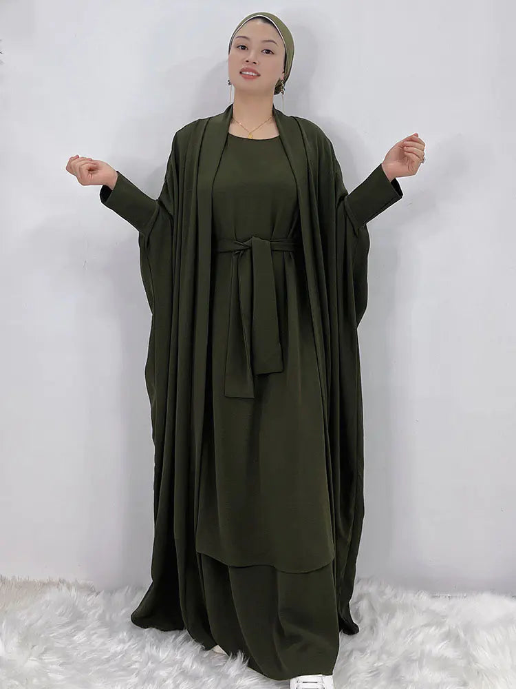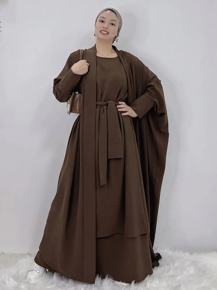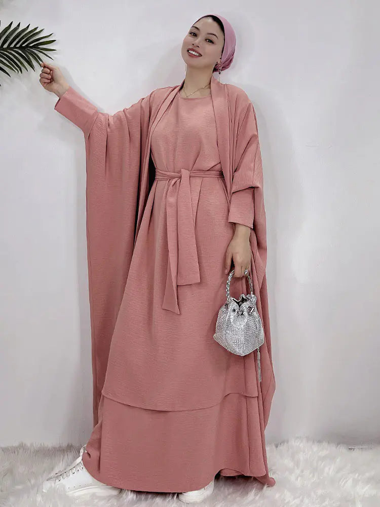 Introducing the Women's Abaya Long Dress Set, your perfect pick for striking elegance this season! This exquisite garment combines traditional and contemporary design elements, creating a classic piece that you’ll love wearing. Crafted from high quality material, this Dubai Abaya Set features an elegant Kaftan dress with a fashionable belt accent. The inner dress is breathable and lightweight for maximum comfort. It comes in a vibrant range of colors that will add flair to any wardrobe. Easily update your look with this unique outfit — try matching it with some statement accessories for a sophisticated evening ensemble. Let this gorgeous Abaya set help you stay on trend in style!
