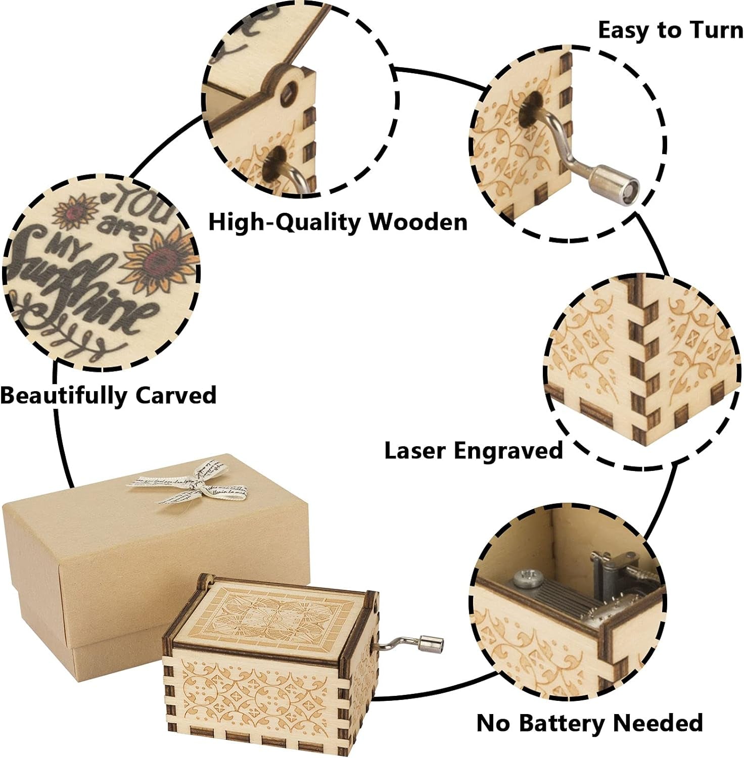 - 1 x Wooden Hand Crank Music Box